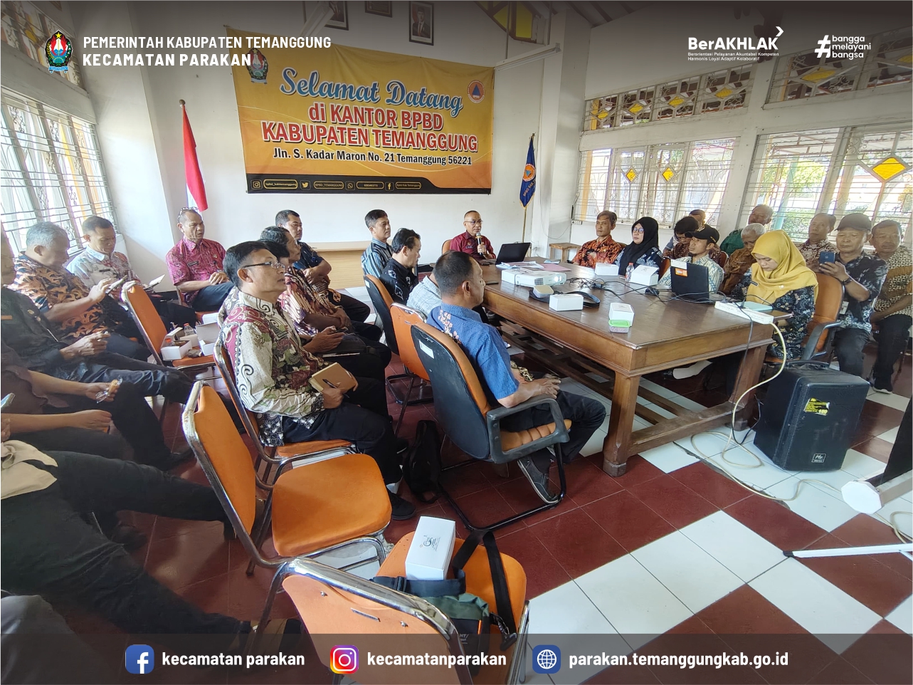 Selasa 14 Oktober 2025, Kasi Trantibum Kecamatan Parakan menghadiri Rapat Koordinasi menghadapi perubahan musim hujan dan kesiapan pembuatan dokumen KRB Tahun 2025 di Aula kantor BPBD Kabupaten Temanggung.
